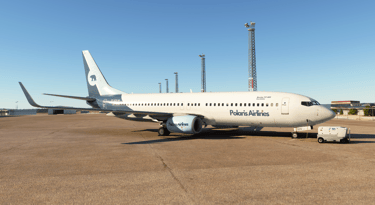 The Boeing 737-800 is a widely used narrow-body, single-aisle jet, part of the 737 Next Generation family. Polaris Airlines 737-800 seats 189 passengers in a single-class configuration. The aircraft has a length of 39.5 meters, a wingspan of 35.8 meters, and a maximum takeoff weight of 79,015 kg. Its range is approximately 2,935 nautical miles (5,436 km), making it ideal for short- to medium-haul routes. The 737-800 is powered by CFM56-7B engines, known for their fuel efficiency and lower operating costs. The aircraft is capable of cruising at speeds of around 530 mph (850 km/h) and is widely used by both low-cost and full-service carriers. Its interior features a 3-3 seating arrangement, and it can carry up to 24 tons of cargo. This model has become a staple for many airlines due to its versatility, efficiency, and ability to operate on a wide range of domestic and international routes. Its combination of performance, capacity, and operating cost makes the 737-800 one of the most popular aircraft in commercial aviation.